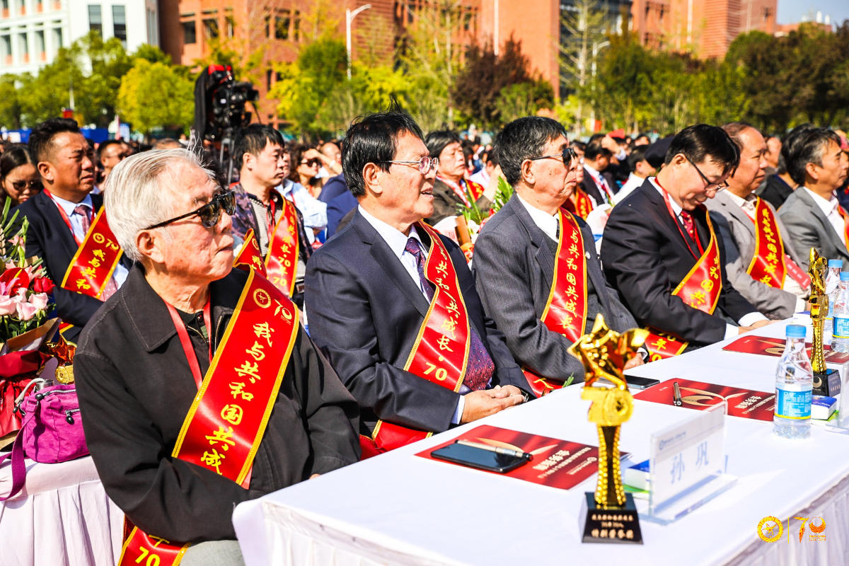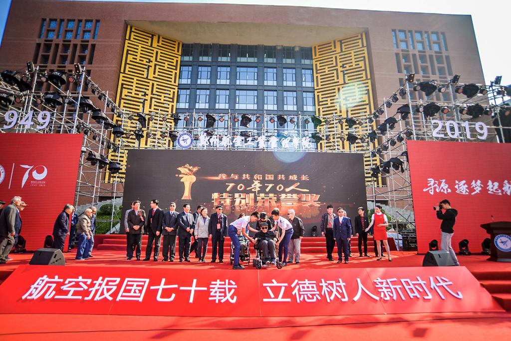 在郑州航院迎接70周年华诞的日子里,学校开展了“我与共和国共成长”先进人物评选活动,从历届校友、离退休老领导老同志和在职职工等15万人中评出了“郑州航院特别荣誉奖”70人,“郑州航院荣誉奖”304人。大会首先对“我与共和国共成长”先进人物进行隆重表彰,并授予“我与共和国共成长·70年70人” 先进人物“郑州航院特别荣誉奖”。