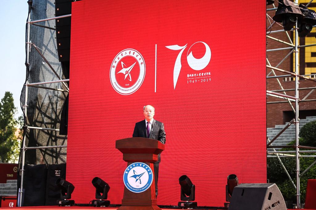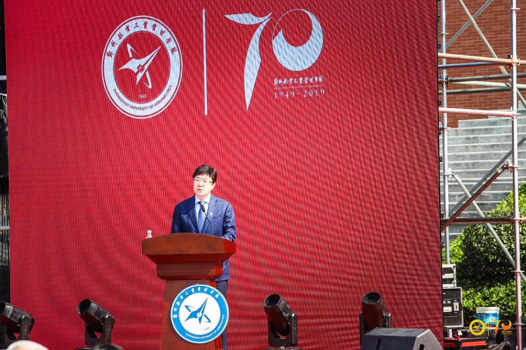 李勇表示,与新中国同龄的郑州航院始终与祖国同呼吸、共命运,在参与和见证祖国日益发展强大的同时,也成就了自身的不断进步与辉煌。翻开郑州航院70年的历史画卷,展现在面前的是一部初心不改、航空报国的创业史,是一部历经沧桑、薪火相传的成长史,更是一部自强不息、百折不挠的奋斗史。