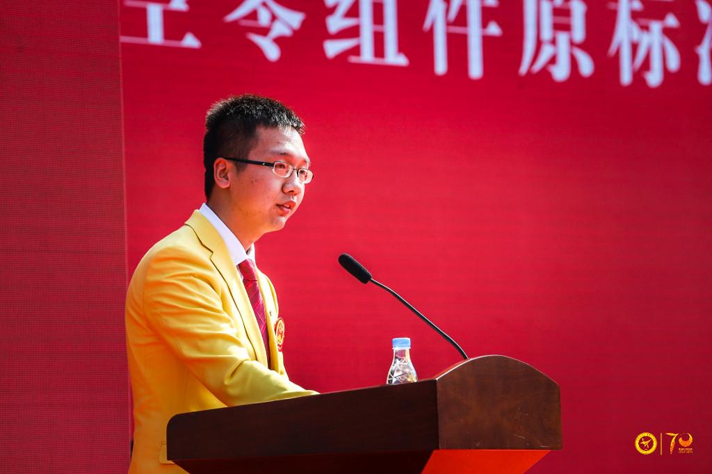 校友代表、第45届世界技能大赛制造团队挑战赛金牌得主、曾接受党和国家领导人亲切接见的中航飞机汉中航空零组件制造公司彭晨晞校友向母校表示祝福和感谢。他表示,转眼已毕业三年,但是在8号实验楼里绘制工程图的场景依然历历在目,正是母校航空报国、奋斗进取的精神激励着他,让青春在奋斗中熠熠生辉,母校和恩师的教诲将永远铭刻在心。这枚金牌来之不易,其中饱含着母校和恩师春风化雨、润物无声的培育之功。他寄语郑州航院学子,要珍惜韶华、不负青春,努力学习科学知识,锤炼过硬本领,以真才实学服务人民,以创新创造贡献国家,用青春和汗水创造出无愧于时代的业绩。