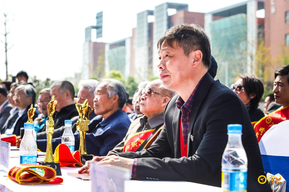 党委书记付强、院长李勇为97岁老校长陶棣佩戴绶带、颁发奖杯